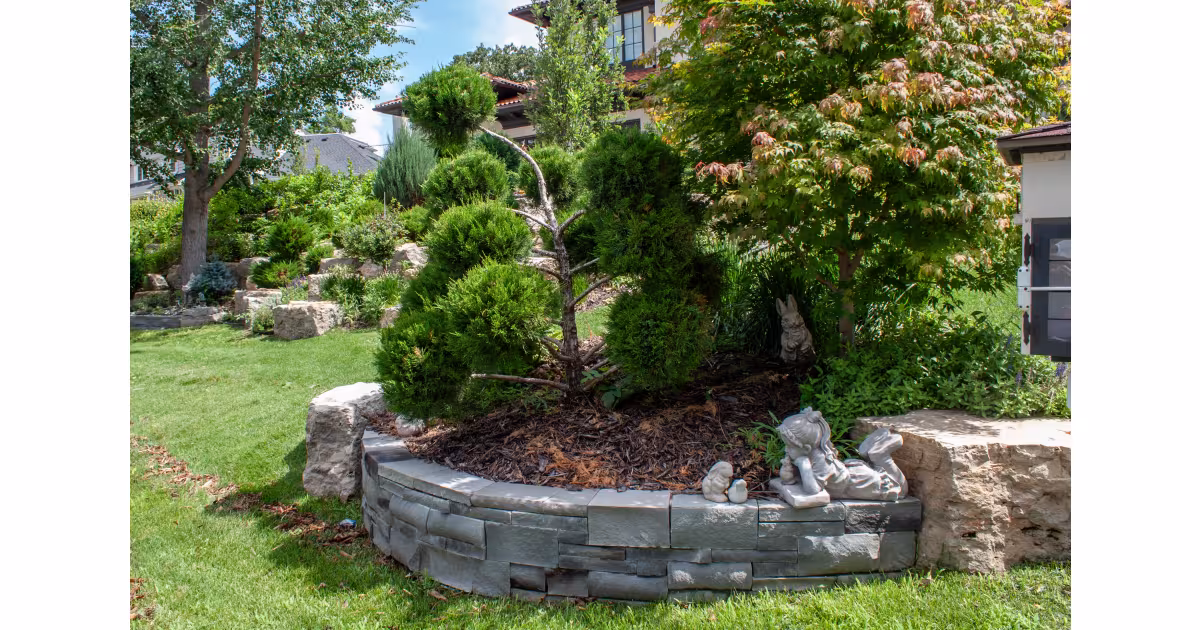 This wall delivers rock-solid style through the thoughtful combination of our full color cut bluestone wallstone paired with Rivers Edge limestone cubes. The rich textures and subtle color shifts create visual interest while maintaining a clean, intentional look that holds up beautifully over time. Limestone accents soften the edges and add contrast, giving the wall depth and personality without overpowering the design. Built to last and designed to impress, this stonework proves that natural materials can be both durable and full of character.